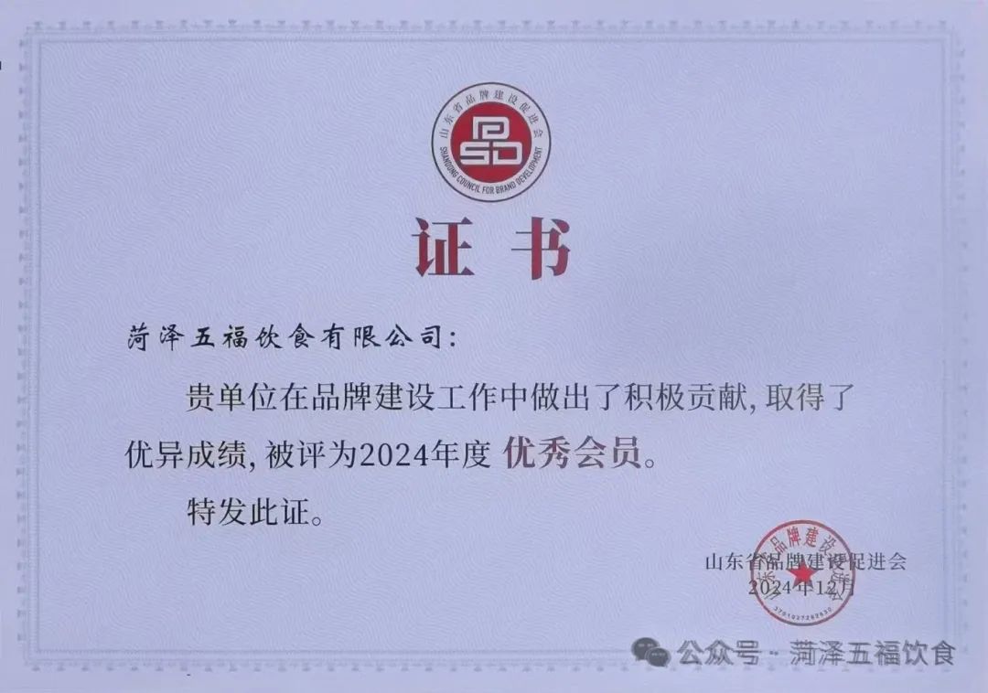 2024年12月,被山東省品牌建設促進會授予“優秀會員”稱...